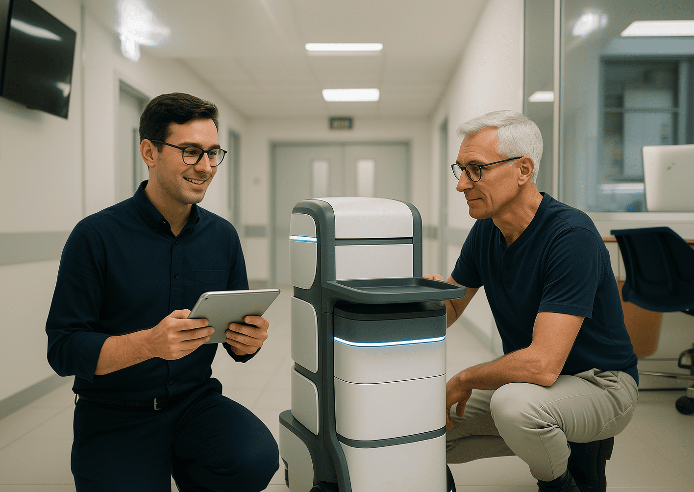 Auch nach dem erfolgreichen Projektabschluss bleiben wir an Ihrer Seite. Wir organisieren die Wartung der Produkte und prüfen regelmäßig, ob noch weitere Bereiche von Robotik oder Automatisierung profitieren oder ob bestehende Prozesse optimiert werden können. So machen wir Ihren Klinikalltag langfristig so effizient wie möglich!